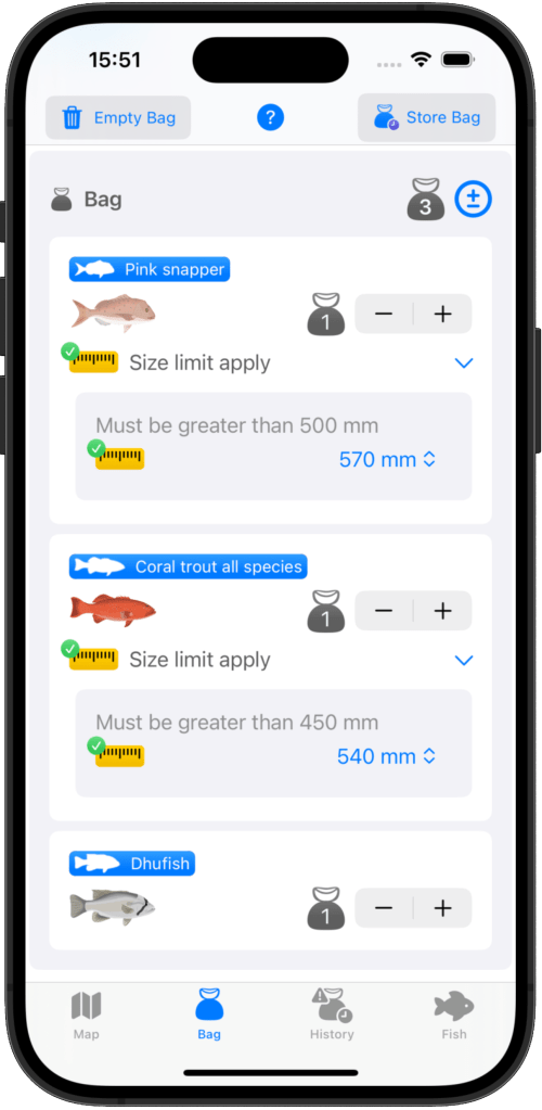 Based on your location, FishOz automatically updates the applicable limits—whether by size, count, season, or any other relevant rule.